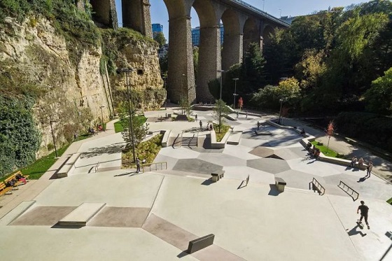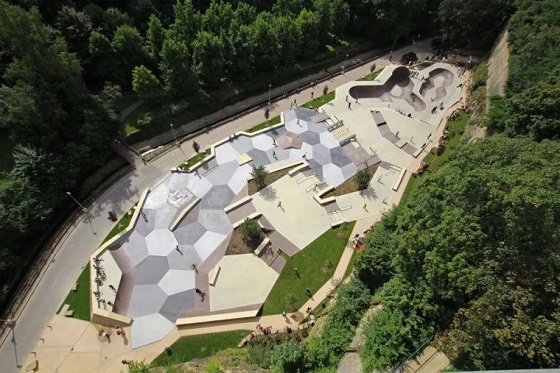 公園總面積為2750平方米,包括一個(gè)小型的碗狀場(chǎng)地,一個(gè)帶有3.2米高擋墻的大型碗狀場(chǎng)地,一座圓頂以及一個(gè)街道廣場(chǎng),是歐洲規(guī)模較大也是比較具吸引力的滑板公園之一。